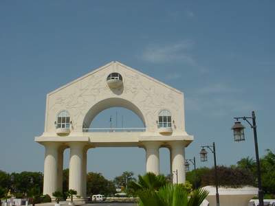 | Here is the Arch commemorating Independence from Brittain. It greets all visitors on the main road into Banjul. Its the highest building in the Gambia, and was designed in 1996 by a Senegalese Architect. |