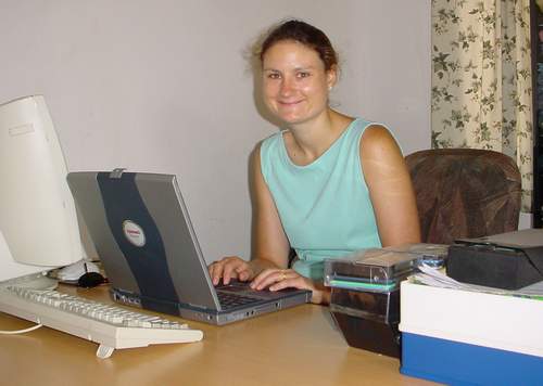 | Although there are a few computers about, and the office is well furnished with all the modern conveniences, we're both very glad we brought our own laptops - makes everything so much easier - especially when the power goes out! |
