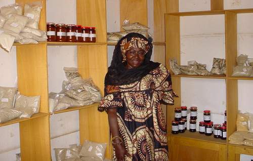 | Amie attributes her success to hard work, product diversification and a good investment strategy. Her business is over 50% larger than when she started. Due to the success of her business, Amie has achieved greater status within her family, been able to take better care of her children and even save some money. Haddy John Hydara Haddy John Hydara began her career as a nurse, but after getting married her husband encouraged her to begin a more profitable career in petty trading. She got her start in 1965 selling items outdoors on a table under an umbrella at one of the busiest intersections in Bakau. She sold seasonal items such as umbrellas and raincoats during the rainy season, and clothing before the annual Tobaski festival when it is traditional to buy new clothes for ones family. Soon she expanded to fast food, snacks and other staple items. Her business provided enough money for her to educate all three of her children and keep them in good health. She and her husband were a great team. He would do the buying and she would do the selling. But in 1986 her husband died. She tried to continue the business without him in order to support her family, but found it very difficult to survive alone in the male-dominated business world. The men she did business with frequently took advantage of her. One day a friend told Haddy about AGE. She began going to meetings and getting more and more involved with the group. Between 1999 and 2001, Haddy received three SDF loans through AGE. She and six friends, who call themselves the �Extra Touch� group, formed what is locally called an �osusu� or a rotational financial support group. Group members lend each other money in times of need. Each member received a D1,000 loan from AGE and they pooled their resources. Haddy put the money to work by investing it in her business. With additional support from AGE, Haddy received training in food preparation. She learned how to make things such as pepper sauce, jam and pickles and how to process cereal. She began bottling and packaging the food she made and used her retail skills to sell the items at a margin of almost 45%. She now employs two assistants and her products are sold in many supermarkets. As a result of her success, she has been able to expand her business and build her own house and storage facility for her business. |