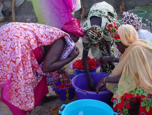 | The group focuses on producing quality products made from local materials that can market themselves such as soap, pepper sauce, mango and papaya jam, and tie and dye fabrics. On days that are designated for group activities, products are made by the group collectively and then sold by the individual members. Each woman receives a 10% commission for everything she sells. Many of the products are sold for very high margins. For example, pepper sauce and soap can be sold for 100% and 50% profit respectively. As a result of activities made possible by the SDF-AFET loan, the group currently has D9,000 savings in the bank plus other assets and money invested in inventory. Members meet twice a year to decide how much money should be divided among the individuals and how much should be reinvested in the business. As members of the group, they all have specialized skills. But they share those skills and teach each other. Then on the days that are not designated for group activities, each member can make her own soap or pepper sauce or papaya jam for her own personal use or to sell. |