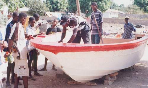 | Aji Haddy Silva has been a member since the beginning. She joined the group so that she could help herself and her family. She has learned all of the skills that the group teaches and has profited tremendously. Before she joined the group, she used to work alone selling things in the market. Her business is much stronger now that she has the group�s products to sell. With the money she has earned, she has been able to pay for many family necessities such as school fees for her children. She has also been able to purchase many things for the household. Although Haddy has only 9 children of her own, her husband has over 30 children from his many marriages. She proudly reports that since she began helping to support the family, her husband has involved her in making many family decisions. The members of Allatentu Kafo have big dreams for the future. They know that they can get much higher prices for their food products when the ingredients are out of season (i.e. customers will pay more for mango jam when there are no mangoes in the market), but they do not have anywhere to keep the products. The group hopes to find a suitable storage facility and save enough money to have the working capital so that they can keep the products and sell them in the off-season. Fiberglass Association Brikama, Misira The Fiberglass Association of Brikama is another CBO affiliated with AFET that took advantage of the SED Credit Scheme. Group members had over 10 years of experience, but lacked start-up capital. In 2001, 27 members collectively took out a loan of D10,000 to buy raw materials. With enough working capital, the group was able to order materials at wholesale prices from BASF in Germany, rather than buy them on an as need basis at high prices across the boarder in Senegal. Although the group lacks a permanent production centre, the group works in the yard of a member�s compound making fiberglass boats, water tanks, tables and chairs. They now sell their products in The Gambia and many surrounding West African countries such as Guinea Bissau and Senegal. |