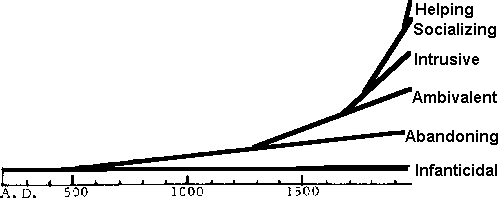 | Abandoning | Mother: "I must leave you, to escape the needs I project into you." | Longer swaddling, fosterage, outside wetnursing, monastery, nunnery and apprenticeship |