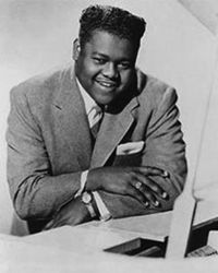 | Ain't That a Shame: Fats Domino (2:31) After a string of his own R&B hits in the early 1950s, Fats (Antoine Domino) finally crossed into the pop charts with "Ain't That a Shame." The 1955 hit was written by Fats and manager Dave Batholomew. The song reached number 10 while white artist Pat Boone released his own version which reached number one. The song established both artists as popular music figures. Like all his records, Domino accompanied his voice with his rockin' piano playing on "Ain't That a Shame." His popularity continued as he released an unprecedented series of 35 Top 40 singles up until the early 1960s, with tunes such as "I'm Walkin'," "Blue Monday", and "Blueberry Hill." |