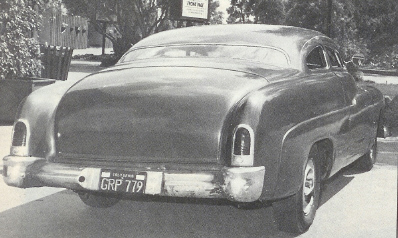 | Apparently, Setzer bought it sight unscene, without knowing it was the Graffiti car. Unfortunately, the car didn't run when he bought it. In a 2001 interview Setzer said, "Graffiti or no Graffiti! (laughing) I had to get rid of it at a really embarrassing price, it was just a big pile of junk." Although the Merc was a "pile of junk," it's apperance has spawned a lot of copy-cats that look and run much better than the submarine-like original. |