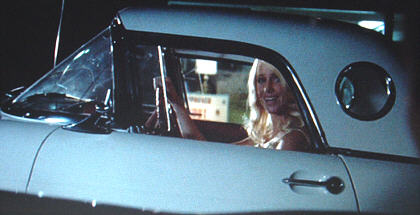 Although the shooting script for Graffiti refers to a blonde in the yellow T-bird, the Dailys were not asked to repaint their precious ride yellow to match the script. And, good thing too, because in the film, the white color of the car serendipitously adds to the ghost-like mystery of the T-Bird and it's beautiful blonde driver. |