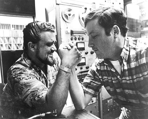 | Radio station KRE in Berkeley, California leased out one of their studios for the night to allow Lucas and crew to film the 5-minute sequence where Curt visits the Wolfman at his radio station. Although Wolfman's appearance is brief he plays a pivotal role in the movie. Sound designer, Walter Murch has pointed out that Wolfman in the story is like the wizard in The Wizard of OZ. The important diety-figure that the protagonist seeks out winds up being just a little man in a booth, twiddling some knobs. And, in both films the larger-than-life figure helps the lead character to reach their destiny. Whereas, the wizard provides Dorothy with a way to return home, Wolfman acts as a catalyst for Curt to leave home. In the moment that he realizes the pot bellied, middle-aged station manager is really Wolfman Jack, Curt finds the courage to face an outside world. |
