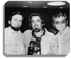 | Co-producer, Gary Kurtz, Wolfman, & Bo Hopkins at an American Graffiti premier. ca.1973. |