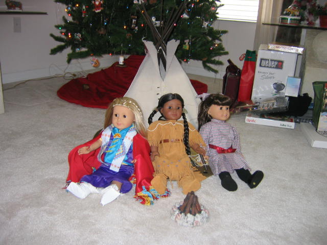 I received Kailey, Kaya, Kaya's tepee and Fancy Shawl Dress for Christmas 2003. My mom received her very own Samantha Doll.