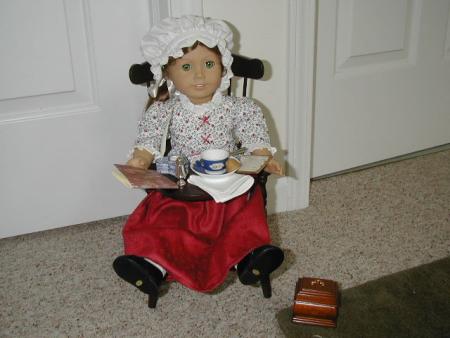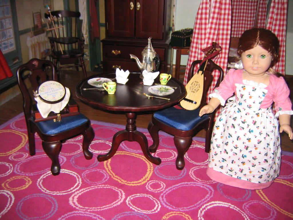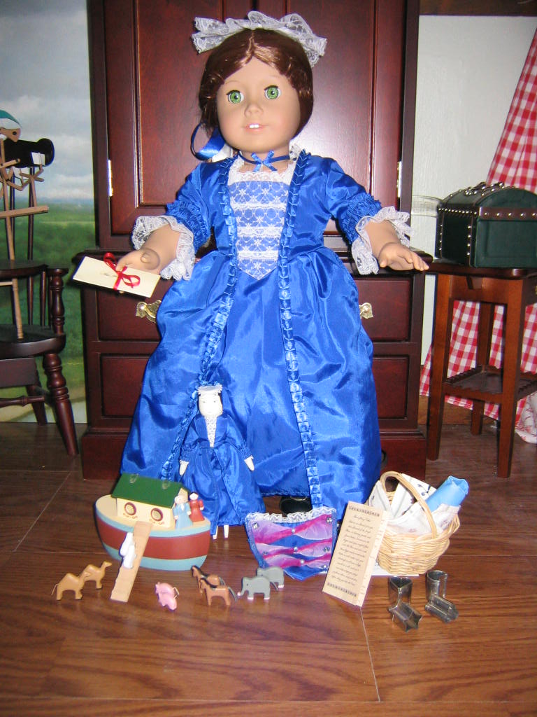| Collection Meet: Felicity Doll School: Laced Jacket & Petticoat Reading and Writing Lesson* Tea Lesson Windsor Writing Chair Christmas: Christmas Gown and Stomacher Shrewsbury Cake Kit* Noah's Ark* Invitation and Fashion Doll Birthday: Birthday Dress with Pinner Apron Tilt-Top Table and Chairs Chocolate Set Guitar* Needlework Kit and Frame* Summer: Summer Gown and Lace Cap Hat and Brocade Slippers Rescue Kit* Plantation Play* Winter: Cardinal Cloak Muff, Mitss and Pattens Winter Entertainments* Travel Trunk* Colonial Undergarmets Night Time: Tall Post Bed with Tester Dressing Table* Nighttime Neccessities* Clothes Press* Extras: Shoes, Socks, and Garters Riding Habit and Hat* Work Gown* Town Fair Outfit* Travel Gown Items with a * mean they are retired. |