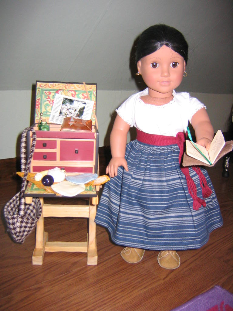 | Collection Meet: Josefina Doll School: Indigo Skirt & Camisa Books and Supplies Picnic Lunch Writing Desk & Stand Christmas: Birthday: Summer: Winter: Night Time: Extras: Harvest Outfit* Items with a * mean they are retired. |