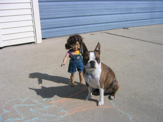 | Almost Summer- April 2004 I took Samantha and Lindsey outside to play with Mr. Mugen |