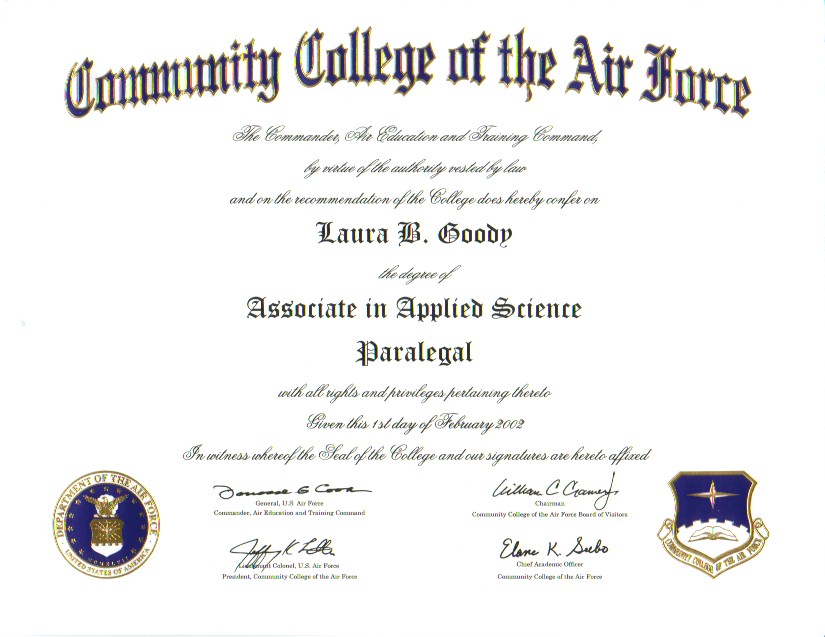 | U.S. Air Force Paralegal Certification |