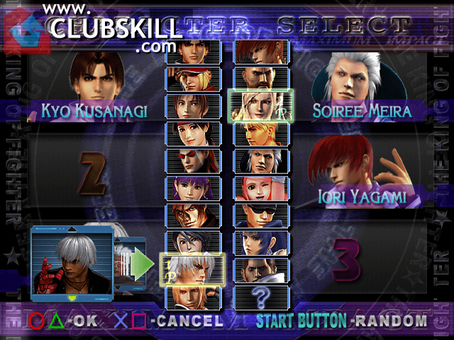 | [Screenshots] Latest screens (from ClubSkill.com) Character Select Screen Maxima vs. K Close-up of Kyo (there's something wrong with his finger) Close-up of Ralf Kyo vs. Terry Iori vs. Kyo Kyo taunting Iori Rock vs Terry More Screens Coming Soon |