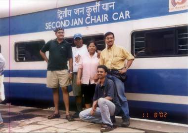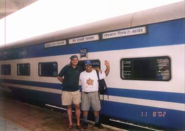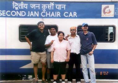 Nirmal) stand outside our "second Jan Chair Car" at