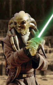 | Status: Jedi Master Species: Nautolan Age: Unknown Homeworld: Glee Anslem Affiliation: Jedi Order Weapon: Lightsaber (green blade) Vehicle: Delta-7 Jedi starfighter |