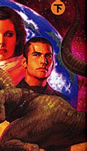 | Jagged Fel's early life was not the most straightforward of upbringings. His father was an ace Imperial pilot and his mother's brother was leader of Rogue Squadron; he was a Corellian brought up in Chiss space; and he became the boyfriend of Jedi Master Luke Skywalker's niece. Yet Jag kept a cool orderliness about him that showed up many of those around him. The son of Soontir Fel and Syal Antilles, Jag Fel was a ruggedly handsome young Corellian. He had pale green eyes, and was distinguished by a scar which ran from his right eye and over his skull. Save for the white hair over the scar, his head was covered with neat jet-black hair. Although Jag was a Corellian, he grew up among the Chiss, and was accepted as one of their own. Because of this, Jag always strove to meet their lofty expectations. Jag joined the Chiss Expansionary Defence Force, where he was became a skilled Clawcraft. pilot. He was deadly calm and serious in battle, knowing he couldn't afford to make mistakes that might cost him his life...or the lives of others in his squadron. During the Yuuzhan Vong invasion, Colonel Jagged Fel and Spike Squadron were part of the fleet assembled by Admiral Pellaeon to aid the New Republic. The skills of Jag and his pilots helped turn back the Yuuzhan Vong. Jag was later asked by his uncle, Wedge Antilles, to accompany the New Republic battle group. Spike Force fought in the Battle of Ithor, after which Jag decided to stay as a liason to Rogue Squadron, while two of his own squadrons reported back to Baron Soontir Fel. It was at this time Jag met Jaina Solo. After a series of missions to scout out yuuzhan Vong utilization of Ithor and other planets, Jag and Jaina spent time together on Hapes. The two grew close, causing confusion in Jaina, who now had two potential suitors; Jag and Kyp Durron. Jag wasn't sure if the pairing was suitable; he was well-organized and calm while Jaina had a headstrong nature. Still, they started a relationship, and both became part of the new rebellion planned by Wedge. Jag helped defend Borleias with the remnants of the New Republic, and later joined Twin Suns Squadron when Luke Skywalker gave Jaina command of his starfighter squadron. Jag and Jaina remained together through many missions, through a new Ssi-Ruuk crisis to the final days of the war. |
