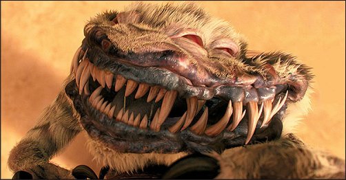 | A deadly fanged maw and long, sharp claws connected by a lithe, feline body: the nexu was well-known as a deadly predator, and for good reason. It was thus a favourite in Geonosian venetations, held in the Stalgasin execution arena. Though at least one nexu was kept on Geonosis, and many more on Malastare, the creatures were native to the forested planet of Cholganna. The indiginous nexu came from the continent of Indona, which teemed with forests. A variety of nexu breeds existed there, adapted to the different environments on the planet. Some lived in Indona's forests, while others dwelled in the warmer southern jungles. The forest nexu had a secondary set of eyes which allowed it to view infrared wavelengths - useful when hunting warm-blooded prey such as the abroreal octopi and bark rats of Cholganna. The nexu's most prominent feature, however, was its wide mouth, filled with deadly fangs which it used to bite and shake its prey to death. Its head was surrounded by a golden mane, and the nexu's paws were studded with heavy claws. The forest nexu on Cholganna used its splayed stance to keep broad footing in the leafy canopies. The tail of a nexu was partially prehensile, and split into two long 'fingers'. This forked tail was often used to stabilize the nexu as it hunted, often wrapping around branches to keep balance. Sharp, curving quills ran down the nexu's spin, used to deter aerial attacks. The nexu used in the Geonosian arena was particuarly fierce, as the Geonosians half-starved many of their beasts to make the ensuing execution even more violent. The nexu attempted to kill Senator Amidala, but she managed to evade its claws by climbing atop the pillar that had once bound her. The nexu leaped up at her, digging its claws into the pillar and Padm�'s back. Luckily, she had only been grazed, and was able to knock the nexu back onto the arena floor. Moments later it was killed by the charging reek. The nexu's carcass remained on the ground even as much larger battles began around it. Nexus were not just used as part of spectator sports; nexu were trained for patrol-duty on Malastare, or as guard-beasts - such as the one supposedly owned by Senator Ask Aak. |