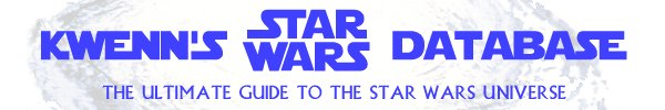 | COMPLETE MENU - all entries - Characters - Creatures - Droids - Events - Locations - Miscellaneous - Organizations - Species - Starships - Technology - Vehicles - Weapons |