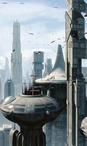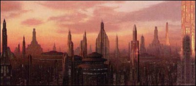 | A true wonder of the galaxy, the entire planet of Coruscant was packed with towering skyscrapers, huge spaceports and magnificant buildings and offices of all shapes and sizes. While Coruscant would seem like a dream planet to many, the reality was a stark contrast. Living in the upper echelons of Galactic Center was easy going; beautiful apartments adorned with all manner of technological advancements, and vistas across the city to die for. However, only the very privileged - or the very rich - could afford such luxurious homes. Were you to travel further down into Coruscant's many sub-levels, you would find yourself in a very different world. Seedy nightclubs and grimy diners frequented the dark lower levels, as did every type of smuggler, pirate and vagabond you could possibly imagine. And any who wished to travel even further down...weren't expect to travel back up again. Coruscant's complete and utter urbanization was the result of tens of thousands of years of industrial and cultural development. Coruscant relied solely on imports, yet without Coruscant, democracy in the galaxy would not exist. The planet was the capital of the galaxy and every major government which ruled it. It was said that if you ruled Coruscant, you ruled the galaxy. The planet's surface was not just buried beneath endless skyscrapers and apartments: huge buildings were errected to control the various machines on the planet. Entire planetary networks were set up to control air traffic through the labyrinthine skylanes of Coruscant, to recieve and send massive streams of data that circulated the planet every second, and various other functions to keep the planet going. Huge orbital mirrors were created to ensure Coruscant had enough light and heat, while vast reservoirs of water from the planet's bodies of water - since lost under layers of construction - ensured Coruscant had enough water. |