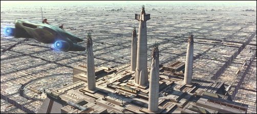 | Though not the largest or grandiose structure on Coruscant, the Jedi Temple was still highly respected, and housed the foundations of the noble Jedi Order. The Temple's design was thought to symbolise the stages of a Jedi's life; the stepped look represented a Jedi padawan's ascent from a learner to a Jedi Master. Atop the Temple stood five council towers: the Council of First Knowledge advised on matters requiring the ancient wisdom of past Jedi; the Reassignment Council organized work for Jedi trainees who were not chosen to become a Padawan; the Council of Reconciliation sought peaceful resolutions to interworld disputes; the High Council had access to overall decision-making powers; and the central Temple Spire was a place for contemplation, and was regarded as the most sacred area of the Temple. The spires also contained advanced communications equipment, considered to be the most sophisticated on Coruscant. Below the towers - which made the Jedi Temple a kilometer in height, dwarfing the low-rise skyscrapers all around it - was a broad promenade, leading into the Temple. Jedi were often seen conversing outside the Temple, though Padawans were not usually allowed to venture any further, unless accompanied by a Master or on a special excerise to develop their skills. This Temple Precinct held many additional buildings and accomodations, though much of a Jedi's took place within the Temple walls. |