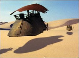 | Jabba the Hutt's luxury pleasure craft, the Khetanna, was a modified Ubrikkian sail barge used to ferry the crimelord to and from his palace - and to the various executions he set up on Tatooine. Jabba's sail barge was originally intended as nothing more than a pleasure craft, and so had little in the way of defences. Since Jabba's underworld dealings made him a prime target for assassins and rival gangs, he had the staff at his palace workshop outfit the Khetanna with numerous upgrades. Tougher armour was fitted, portable antipersonnel blasters could be fitted to the handrails, and a powerful deck gun was installed. An advanced sensor suite was also installed, to warn the Hutt of approaching Imperials. The main use of the Khetanna was to transport Jabba for business meetings, or from his townhouses in Tatooine's cities to his opulent palace. However, he also used it to ferry himself and his court out to high-stakes races to win more credits for his criminal empire, and to sometimes raid his many rivals. Apart from its practical uses, the Khetanna was used to host decadent parties during cruises across Tatooine. On these cruises, Jabba and his retinue made use of the elaborate kitchen the Hutt requested. The barge was used also to watch executions out in the Dune Sea - though it was one of these executions that saw the end of Jabba, and the destruction of the Khetanna. When Luke Skywalker killed Jabba's rancor after attempting to free Han Solo, Jabba ordered the Jedi and his friends to be executed in the Dune Sea. While the Hutt and his court travelled in the Khetanna, Jabba's enemies rode in a desert skiff to the Pit of Carkoon, where they would be thrown to the Sarlacc. However, Skywalker turned the tables on Jabba and attacked his henchmen. Leia Organa killed the Hutt, and raced up to the deck. There, she used the Khetanna's own deck gun to blast the barge. As the Rebels escaped, the sail barge exploded, and Jabba's empire went up in flames with it. |