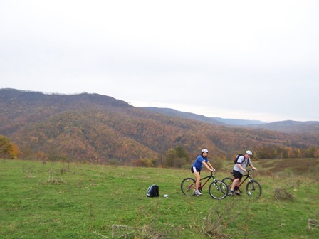 | Photo by Kevin Stitzinger Davis and Elkins College also offers opportunity to participate in outdoor education through the Physical Education program. All PE Majors are required to take the PHED 125 Outdoor Physical Education class offered during the spring semester. In this photo, Physical Education Majors Bethany Sindy and Travis Fisher bike atop Bickle�s Knob to fulfill their active participation requirement associated with the course. |