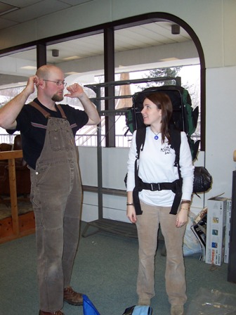 | Photo by Laura Bonser On my first backpacking trip back in January, 2006, our English class had to learn how to properly wear and pack our backpacks. A crucial part of planning for Outdoor Leader student, Will Kirk (left), was to ensure that the English students could properly fit and carry the weight of their bags. Another key aspect of planning is knowing what you're going to pack and where it is located within your bag. I learned this lesson very quickly as I discovered that not only was it a pain to have to dig out the camera from under six layers of clothing, but when you're in dire need of the toilet kit and it's buried in the bottom of your bag, you could have some serious problems. |