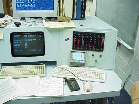 | This is the control panel. It monitors all aspects of the reactor. Radiation in the room was a little higher than normal that day. Not because of the reactor, but because it was a cold windless morning and naturally-occuring Radon gas from the surrounding soil was pooling everywhere just above the ground. Don't freak out, it happens everywhere all the time. <<Back Home Next>> |