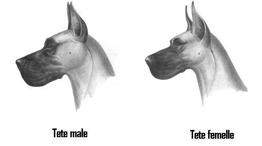 | Source : Club Canin Canadien Aspect general Haute stature, distinction, dignite, force, elegance, propostions harmonieuses, musculature fine et puissante. Ce geant parmi les chiens est unique par sa constitution generale si bien equilibree qu'il ne parait pas lourdaud mais elegant : il s'agit de l'Apollon des chiens. Audacieux, courageux, il n'est jamais timide, il est amical et sur. Cette combinaison de caracteristiques physiques et mentales est a la base de la majeste typique du grand danois, a aucune autre pareille. On retrouve chez cette race un fort degre de masculinite chez le male et de feminite chez la femelle. Le male semble dans l'ensemble olus massif que sa compagne avec une plus grosse ossature. Dans le rapport longueur/hauteur, l'animal doit sembler le plus carre possible. Chez la femelle, le corps peut etre legerement plus long. Defaut: manque d'unite;timidite; males a allure feminine; musculature deficiente; mauvais developpement osseux;mauvaise condition physique;rachitisme; femelle a allure masculine Taille Hauteur au garrot : Pas moins que 76 cm (30 pouces) pour le male, mais il est souhaitable que ces mesures soient de 81 cm (32 pouces) ou plus pourvu qu'il soit bien proportionne pour sa taille. La femelle ne doit pas etre moins haute que 71 cm (28 pouces) au garrot mais il est preferable qu'elle mesure 76 cm (30 pouces) ou plus pourvue qu'elle soit bien proportionnee pour sa taille. Une bonne ossature et une bonne musculature doivent equilibrer le tout. Defaut : sujet leger du genre whippet; sujet lourds, malproportionne; l'equilibre est toujours a rechercher. |