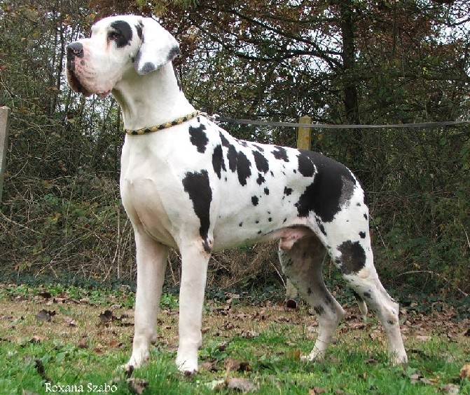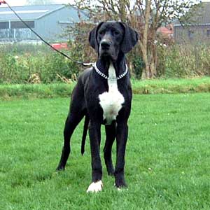 | Appele Dogue Allemand ou Grand Danois, la controverse entourant l'origine de ce chien est encore bien presente de nos jours. Le Grand Danois serait issus de mariages entre le Bullenbeisser, de chiens utilises pour la chasses a la courre, le sangliers plus particulierement, et de chiens puissant comme le matin anglais et souple et vif comme le levrier. Un peu plus tard, les noms de " dogue d'Ulm", "dogue anglais", "Dogue Danois", "Hatzrude", "Saupacker" et "Grand Dogue" ont ete etablis pour classer les chiens selon leurs grandeurs et leur couleur. C'est en 1878, lors d'un rassemblement en Allemagne regroupant plusieurs eleveurs et juges, que le nom de Dogue Allemand a ete determiner afin de fusionner toutes les differentes varietes. En 1880, le premier standard du Grand Danois a ete redige et a ete depuis modifier a plusieurs reprises pour en venir au standard que nous avons a ce jour. Pour finir, que nous l'appelond Grand Danois, Dogue Allemand, Great Dane, Deutch Doggue, Allani, German Mastiff ou Great Danish Dod, il s'agit bet et bien, dans tous les cas, de l'apollon des chiens que nous aimons tant. |