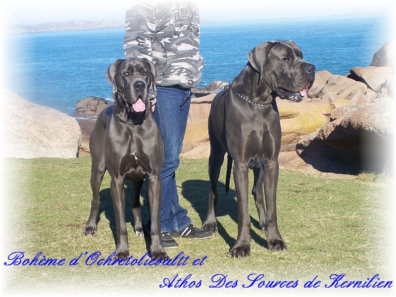 | Boheme d'Ochretolievaltt & Athos des sources de Kernilien Merci a Elodie Cotel pour la photo www.doguesallemandsbleus.fr |