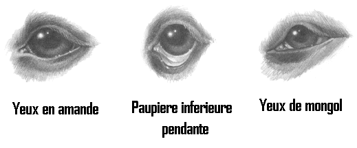 | Dentition Forte, bien developee et nette. Les incisives de la machoire inferieure doivent toucher legerement au bas de la face interne des incisives superieures ( articule en ciseaux) Si les dents anterieures des deux machoires se rencontrent a egalite, elles s'usent trop rapidement. Defauts : Dents se rencontrant a egalite; machoire inferieure trop longue ou trop courte; incisives mal alignees; dent noires ou brunes; dents manquantes. Yeux De grandeur moyenne, aussi fonces que possible, avec une expression vive et intelligente; paupieres en forme d'amande, arcades sourcilieres bien developpees. Defauts : Yeux pales, percant, de couleur ambre, bleu pale a bleu delave, rouge ou fatigues; yeux de couleur differentes; yeux trop ecartes; yeux de mongol; yeux avec conjonctive prononcee; avec paupiere inferieure trop pendante. Chez les sujets bleus ou noirs les yeux plus pales sont admis mais ne sont pas souhaitables. Chez les sujet arlequins ils doivent etre fonces. Les yeux pales, de cuoleurs differentes et les yeux vairons sont admis mais non souhaitables. |
