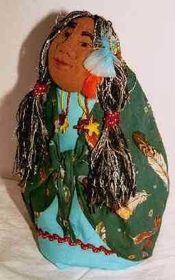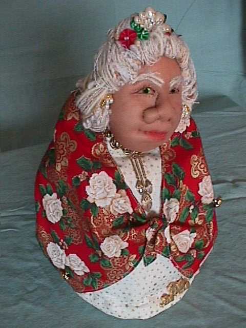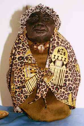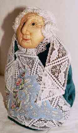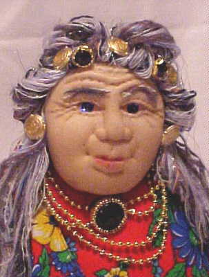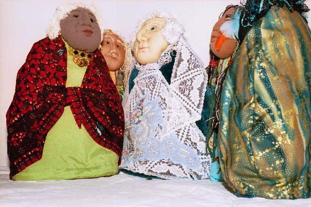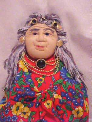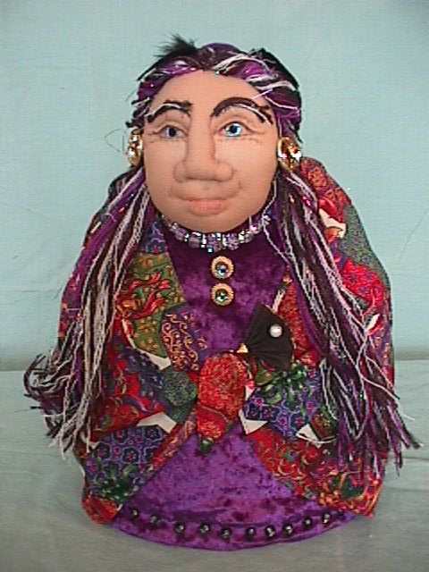 | The Grandmothers are tea cosies. They provide hot tea and comfort and strength They hold the wisdom of the ages. They have sculptured faces and abstract bodies. They are about 14 inches tall and sit over a small teapot. They are my answer to becoming 50. Many of the images here are sold however commisions are taken. The cost for a custom made "baba" is $90 Canadian |