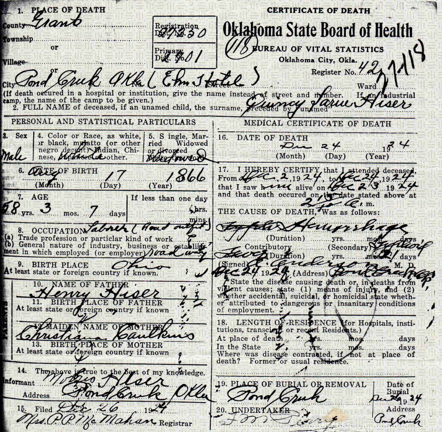 DEATH CERTIFICATE OF QUINCY LARUE HISER