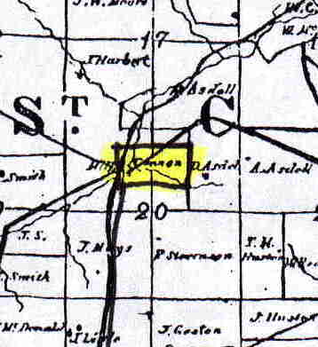 Elkrun Township Section Map. 1860 Map of sections 28, 29, 30, 31, 32 & 33,Elkrun Township, Columbiana County, Ohio plus the location of the Carlisle Cemetery.