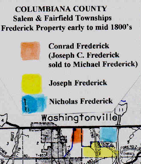 Frederick Property. Section map of Salem and Fairfield Township, Columbiana County, Ohio showing the property of Conrad, Joseph, and Nicholas Frederick in the early to mid 1800's.