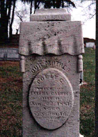 Calkins, Polly Fuller. Daughter of Joseph and Molly Fuller and married to A. Elisha Calkins. Tombstone in Eisenhour Cemetery, Freedom Township, Wood County, Ohio.