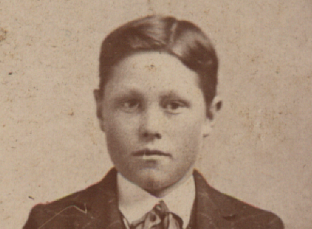 Hill, Unknown boy. Probably Virgil Hill, son of Joseph Ellery Hill. Photo taken in the late 1800's in Livingston County, Missouri.
