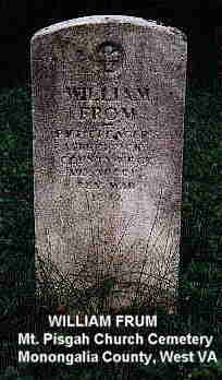 Frum, William. Tombstone at Mt. Pisgah Cemetery, Monongalia County, West Virginia.
