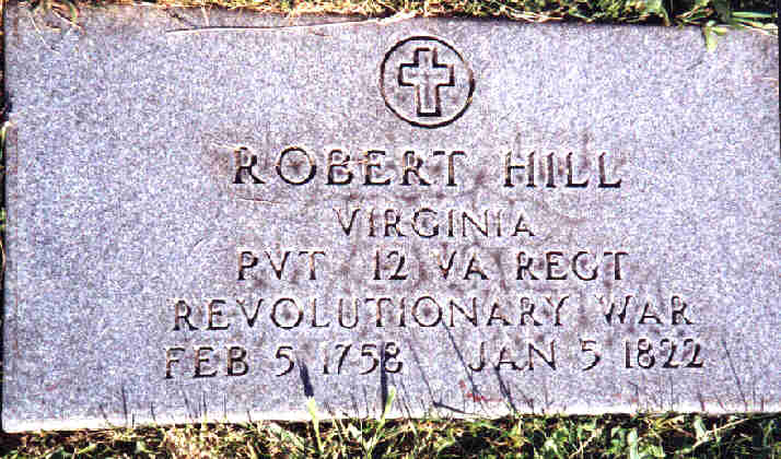 Hill, Robert. DAR marker for Robert Hills service in the American Revolution.