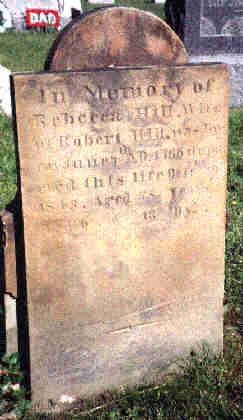 Hill, Rebecca Caldwell. Wife of Robert Hill. Tombstone in Mt. Union Cemetery, north of Morgantown, West Virginia. Rebecca's and Robert's tombstones are back to back.
