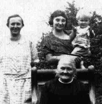 Hiser. Photograph of four generations taken circa 1922. Ida Kroll Kutza (seated), Amanda Kutza Farschman, Eva Farschman Hiser holding Clarence Harold Hiser.
