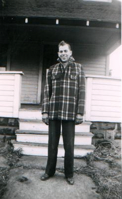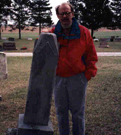 Hiser, Henry. Ted Steven Hiser standing beside the cemetery marker of his great great grandfather. Tombstone located in Eisenhour Cemetery, Freedom Township, Wood County, Ohio.