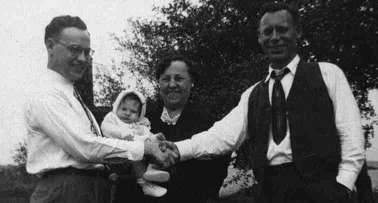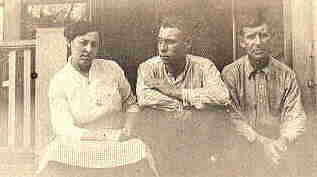 Hughes, Family on porch, Elizabeth Olesen Hughes, George Henry Hughes, and John George Hughes. Photo taken on their porch at 131 Spring Street, Woodlawn, Pennsylvania circa 1920 or earlier.