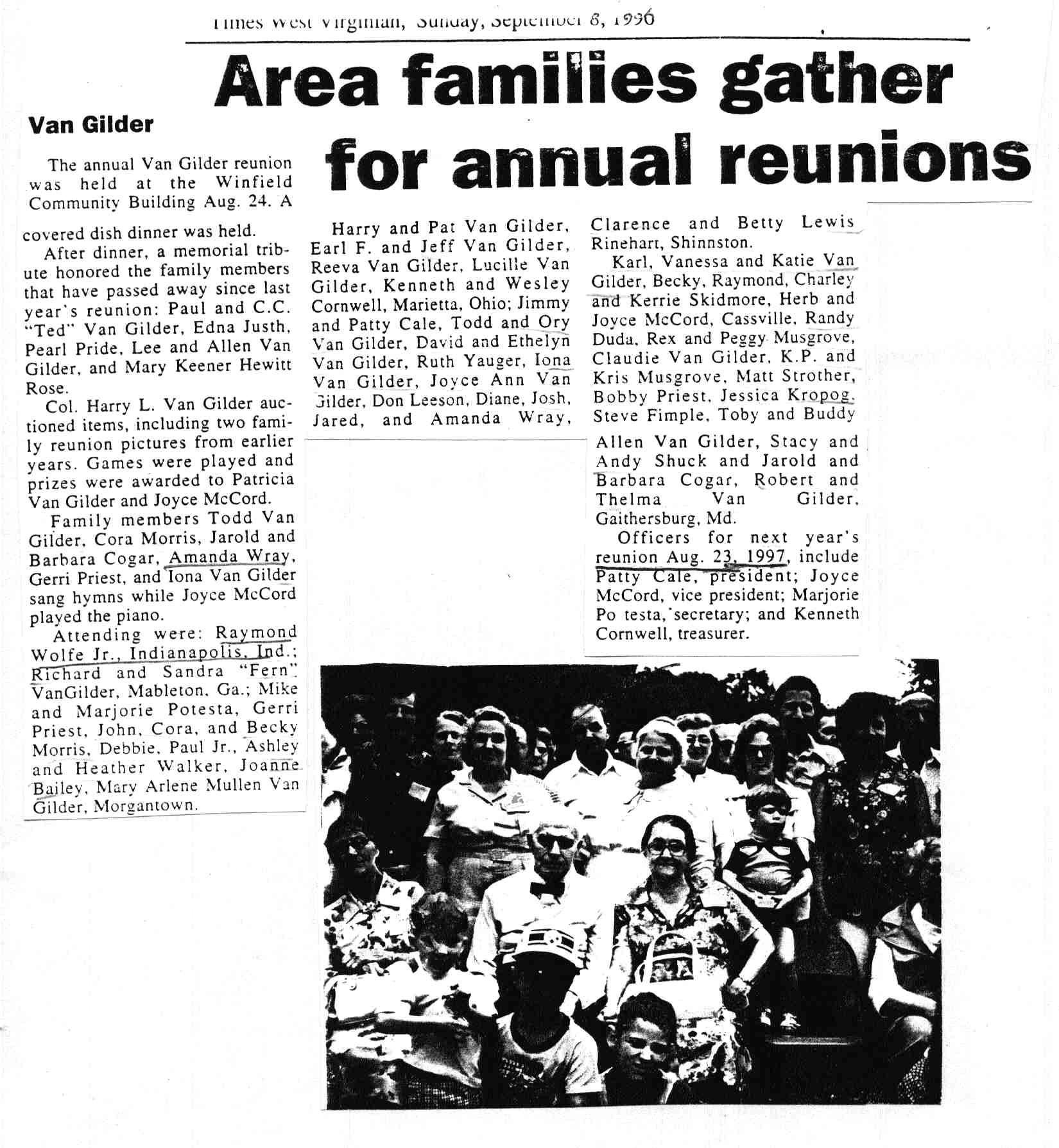Our first VanGilder reunion. Our line in attendance: George VanGilder and Edna Hughes, Faith Hughes and Ed Roolf, Dick and Catherine Rootes, Linda and Garrett Hiser, and Jeff Hughes