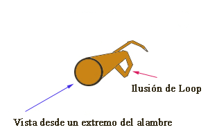 Ejemplo: En la figura 1 vemos un trozo de alambre (que simula un rayo) bien de costado. Al cambiar el punto de vista y mirarlo desde uno de sus extremos (figura 2)podemos ver un loop o vuelta que no es tal. Figura 1 Figura 2