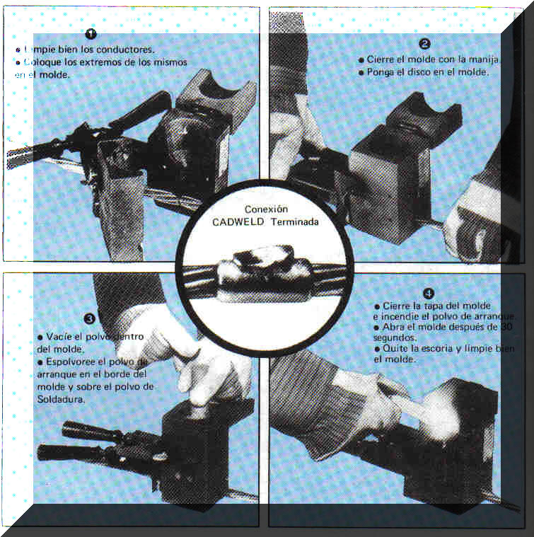 Unión de soldadura cadweld entre el cable y el electrodo de puesta a tierra. |