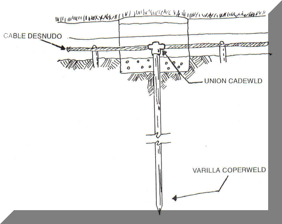 Unión mecánica entre punta y eléctrodo con el cable de cobre desnudo propiciando sulfatación u oxidación disminuyendo así la conductividad del sistema |