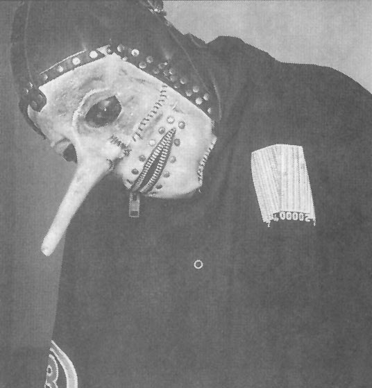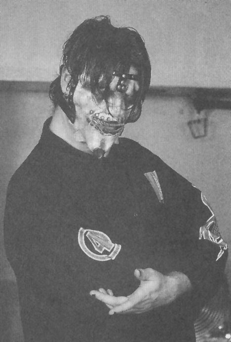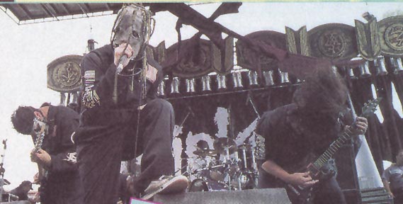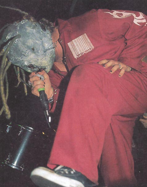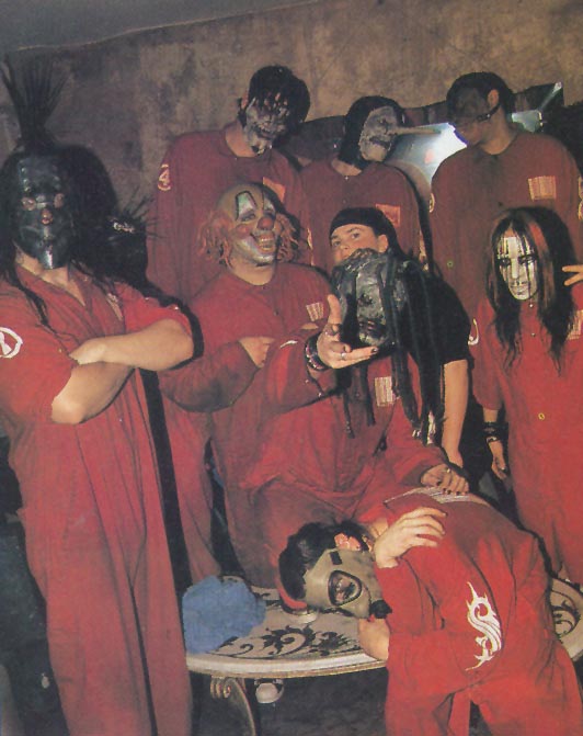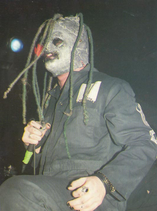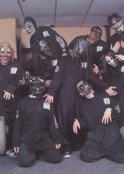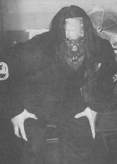 Joey Jordison (#1) | This 24 year old drummer helps write alot of the music. He is influenced by a variety of music that includes Slayer and The Police. He used to play for a band called Modifious and wears the white kubuki mask. |
