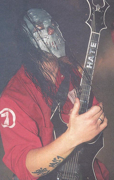 Mick Thompson (#7) | Mick, Log, plays guitar and wears the dark hockey mask. Started playing in bands at the age of 16 and at the age of 19 he got his first show. his influences are the Beatles, Jimi Hendrix and he is fond of cats. |